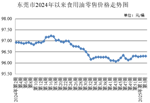 第3周,4種糧食農貿市場零售均價為每500克3.39元,與上周持平,其中,3種大米零售均價為每500克3.32元,與上周持平;面粉零售均價為每500克3.58元,較上周下降0.83%。5L桶裝食用油農貿市場零售均價為每桶96.30元,與上周持平。