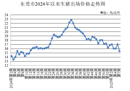 第7周,監測的生豬出場價格為每公斤15.40元,較上周下降9.41%。總肉批發均價為每500克12.30元,較上周下降1.60%。